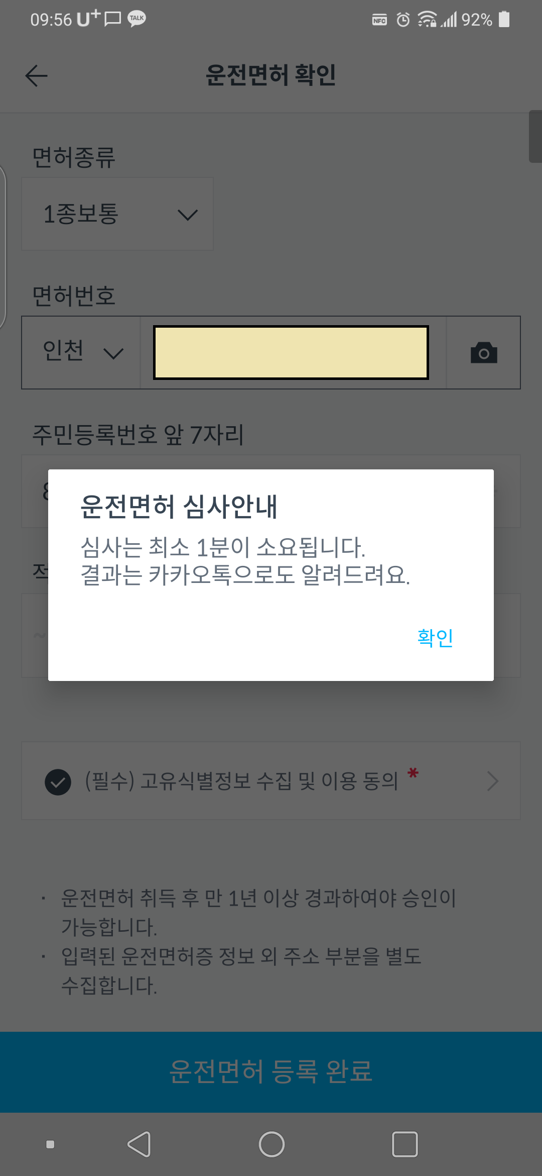 대부분의 정보들이 사진을 찍고도 충분히 되지만, 숫자들이 간혹 틀리게 입력되는 경우들이 있는 만큼 다시 확인하고 심사요청을 넣으면 심사가 진행됩니다. 아무래도 고가의 차량을 빌리고 하는 부분이기 때문에 운전면허증에 대한 확인을 하기 위한 심사 절차들이 있습니다. 다른 심사들 처럼 오래걸리는 것은 아니고 금방 해결됩니다. 저는 한 1~2분쯤 걸린 것 같습니다!!