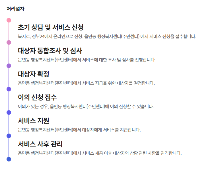 | 신청방법 | 거주지 동 행정복지센터 방문 또는 정부 24, 복지로 홈페이지 활용 |